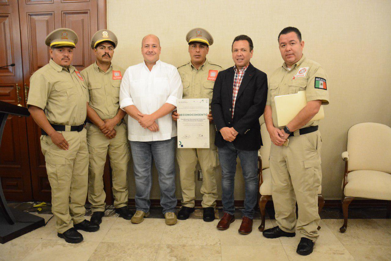 Por parte de la Coordinación Municipal de Protección Civil y Bomberos de Zapopan, el oficial Juan Ramón Ramos Ortega recibió el reconocimiento.