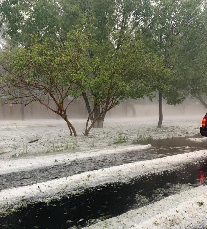 La granizada y fuerte lluvia provocaron inundaciones, con vehículos atrapados en el agua y por el bloqueo de árboles caídos y materiales que arrastraron las corrientes en el sur de la ciudad.