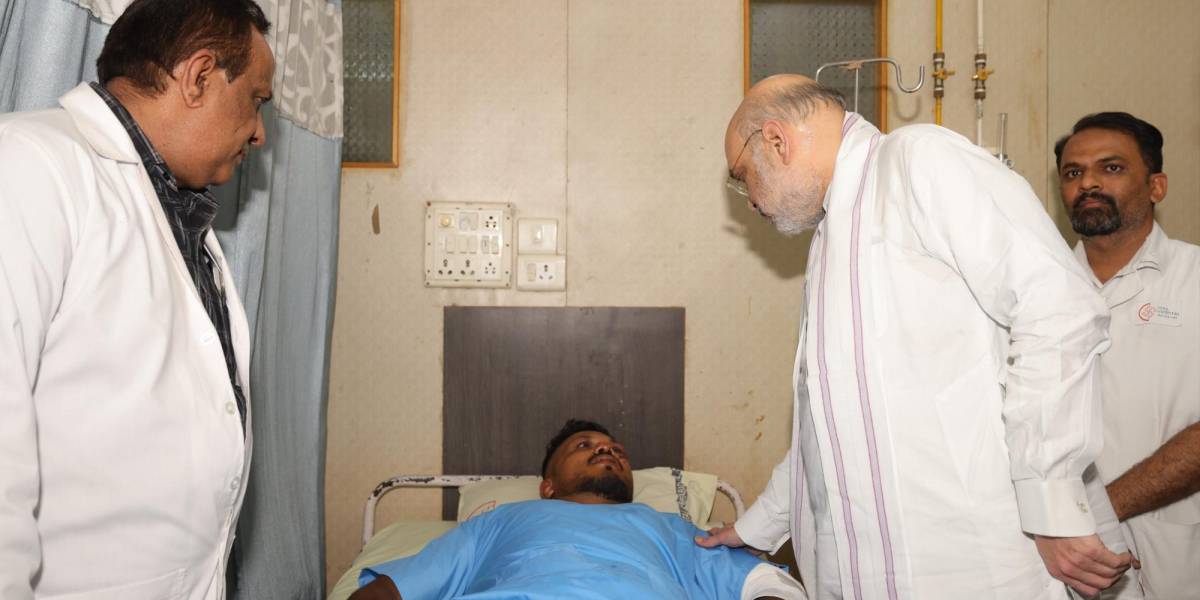 Medios indios publicaron imágenes del sobreviviente en una cama de hospital reuniéndose con el ministro del Interior de India, Amit Shah.