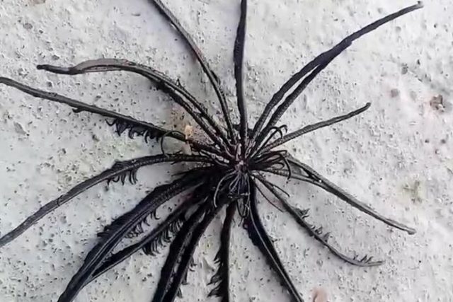 Aunque no es un hecho, el propio pescador comentó que varios de sus compañeros le ayudaron a averiguar de qué especie se trataba. La conclusión fue que se trata de una rara estrella de mar de plumas negras oscuras, que son conocidas como ‘crinoideos’.