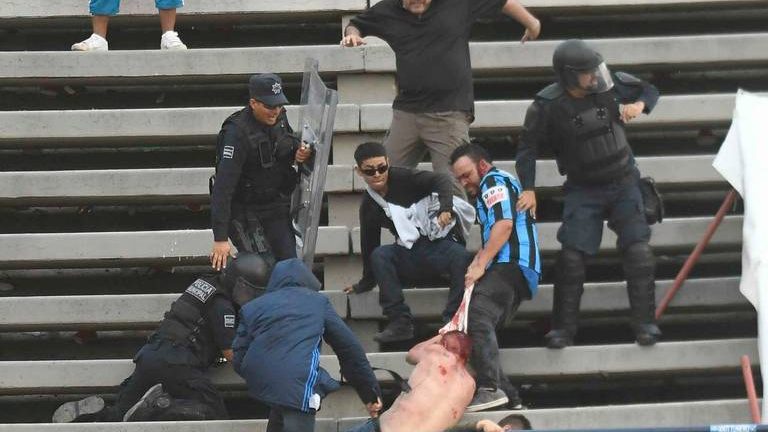 Indicó que las autoridades «estamos investigando y evaluando lo sucedido». En los hechos sobresalen las escenas en que gente lleva cargando a un sujeto que sangra por la cara, y en otras imágenes que repiten por la televisión, sujetos patean a otro que está sobre el graderío sin moverse.