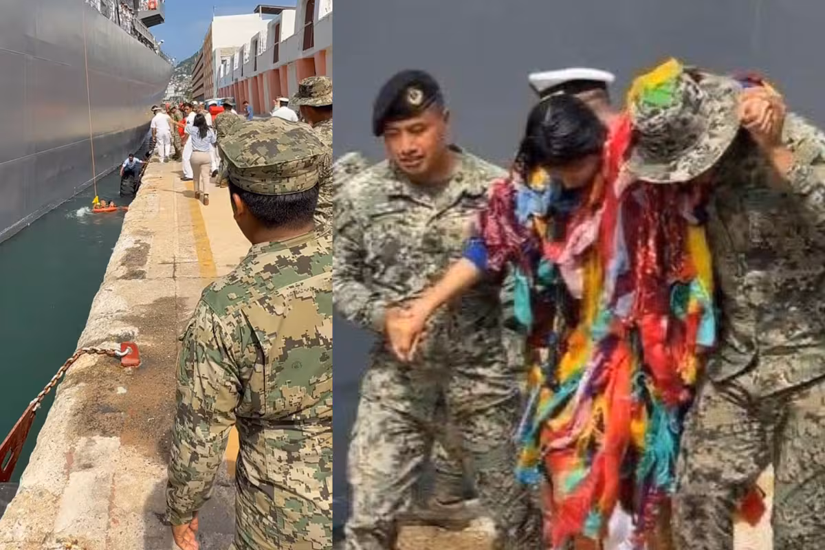 Elementos de la Marina Armada de México y tripulantes japoneses fueron a su rescate. Desde la cubierta del buque, se lanzaron salvavidas al mar, y un marino mexicano se arrojó desde el muelle para auxiliarla. La joven fue rescatada rápidamente y, aunque no presentó lesiones visibles, fue atendida por personal médico como medida preventiva.