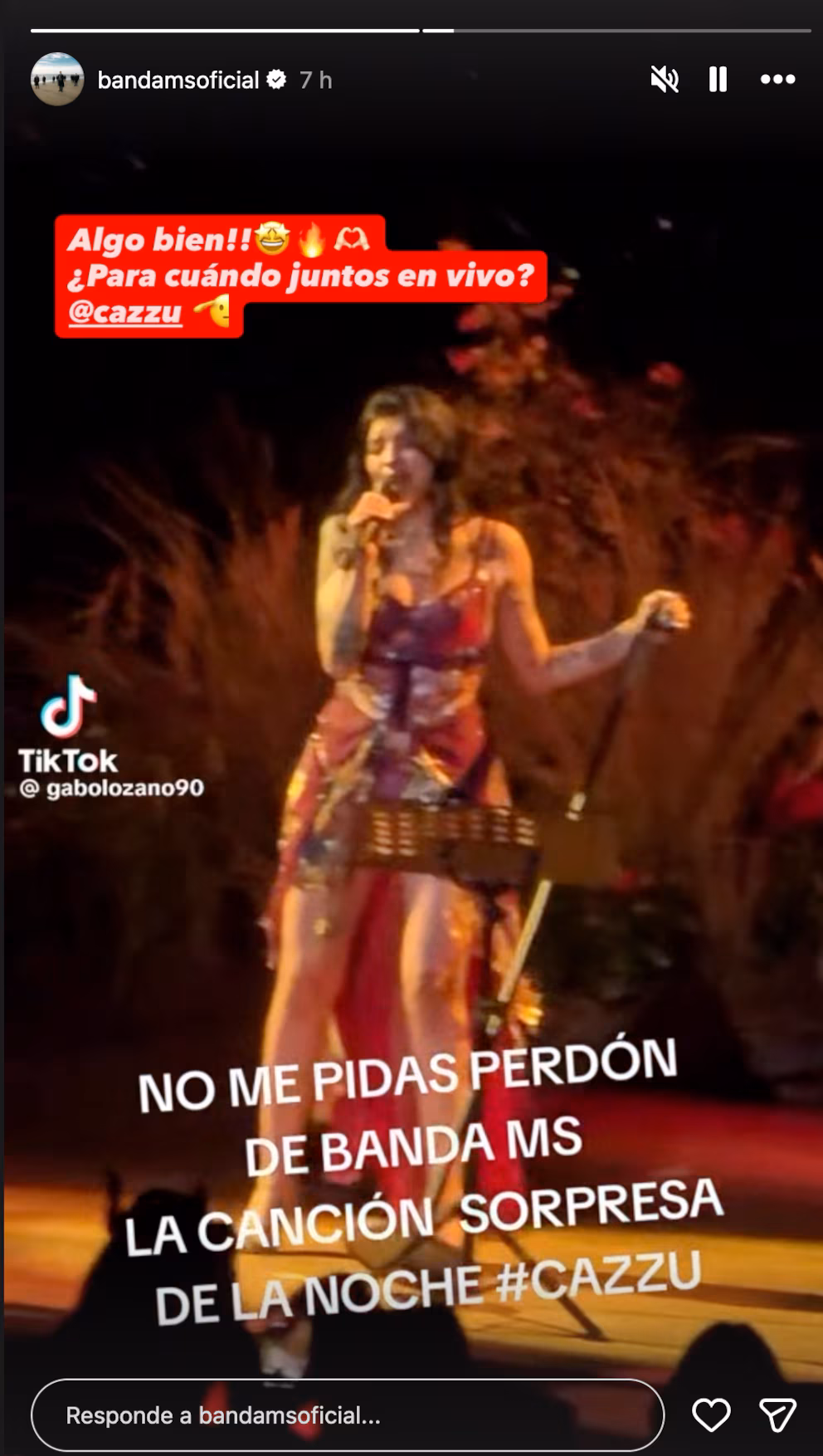 Como era de esperarse, la respuesta de la Banda MS a la interpretación de su tema fue inmediata y positiva. En su cuenta oficial de Instagram, el grupo compartió el video de la actuación con el mensaje: “Algo bien” y la pregunta: “¿Para cuándo juntos en vivo?”, etiquetando a la artista argentina.