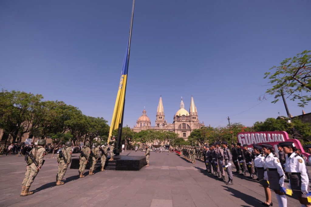 Autoridades estatales participaron en el izamiento de bandera, como parte de la conmemoración del 201 aniversario de Jalisco como Estado Libre y Soberano, en la Plaza Liberación. El evento fue presidido por el secretario general de Gobierno, Enrique Ibarra Pedroza.