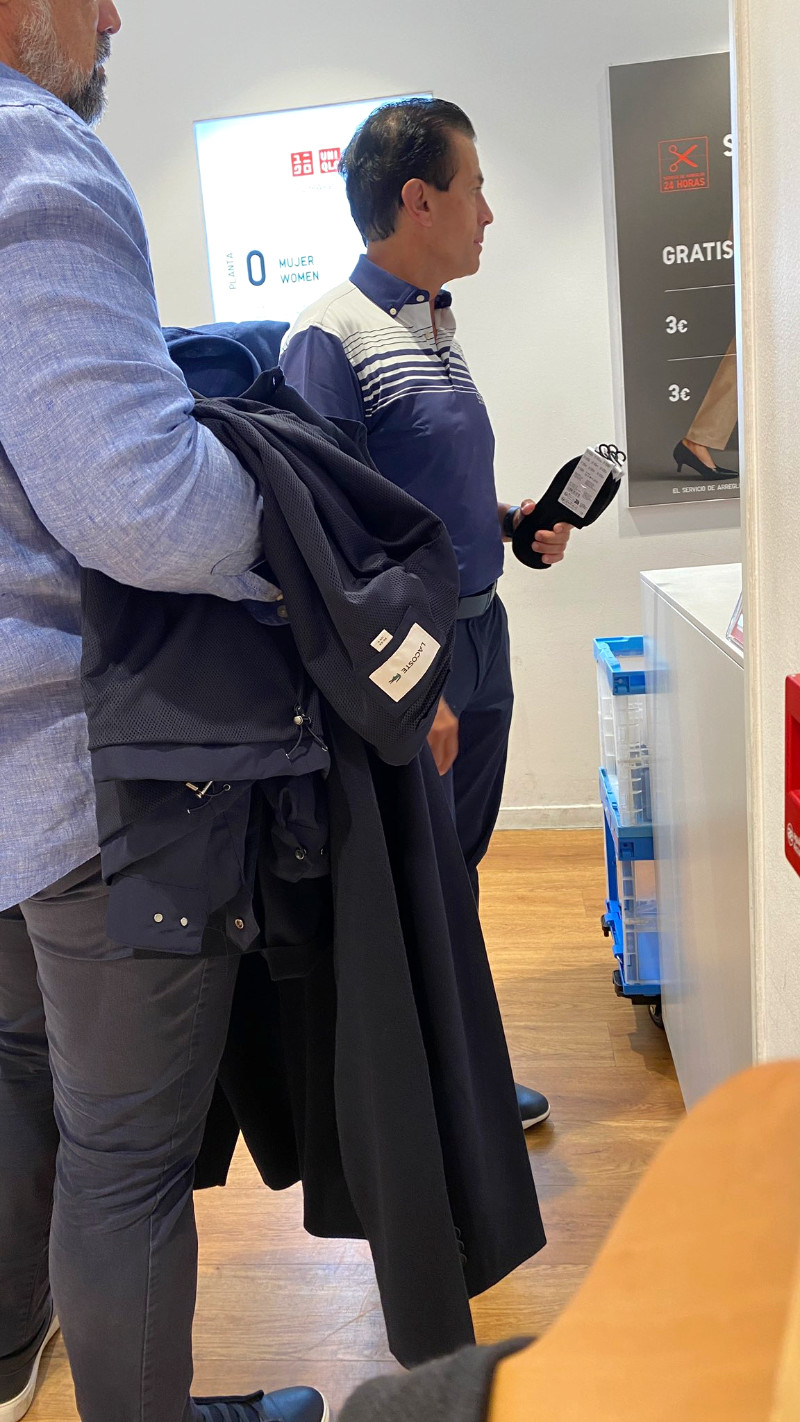 El expresidente Enrique Peña Nieto, fue captado haciendo compras en una sucursal de Uniqlo en la capital de España.