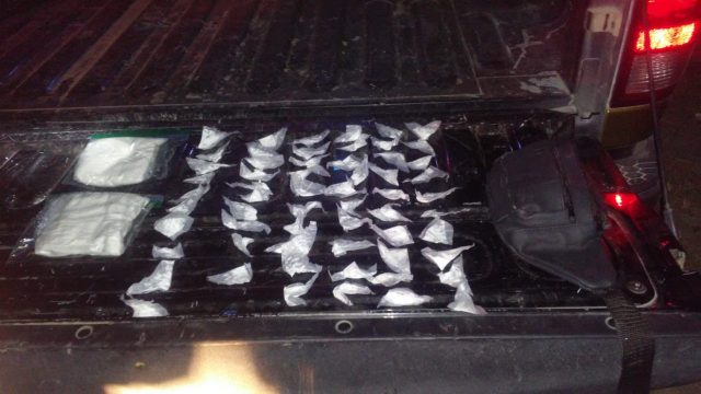 El hombre, quien dijo tener 28 años, le fue asegurada una bolsa tipo mariconera en color negro, en la cual llevaba 60 envoltorios de aparente cocaína, así como dos paquetes más con el mismo alcaloide, por lo que quedó detenido.