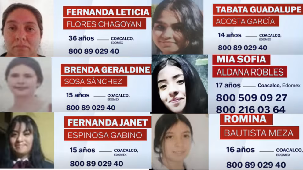 Seis mujeres, cinco menores de edad y una adulta, desaparecieron en los últimos días en el municipio mexiquense de Coacalco.