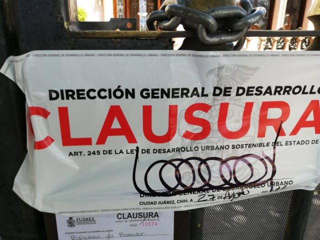 De acuerdo a los sellos colocados en el domicilio ubicado en la calle de Lerdo número 356 de la zona centro de Ciudad Juárez, estipulan que la construcción no cuenta con las licencias de suelo y funcionamiento requeridas para su correcta operación, estas basadas en el Reglamento de Entorno e Imagen Urbana del Municipio de Ciudad Juárez, Chihuahua.
