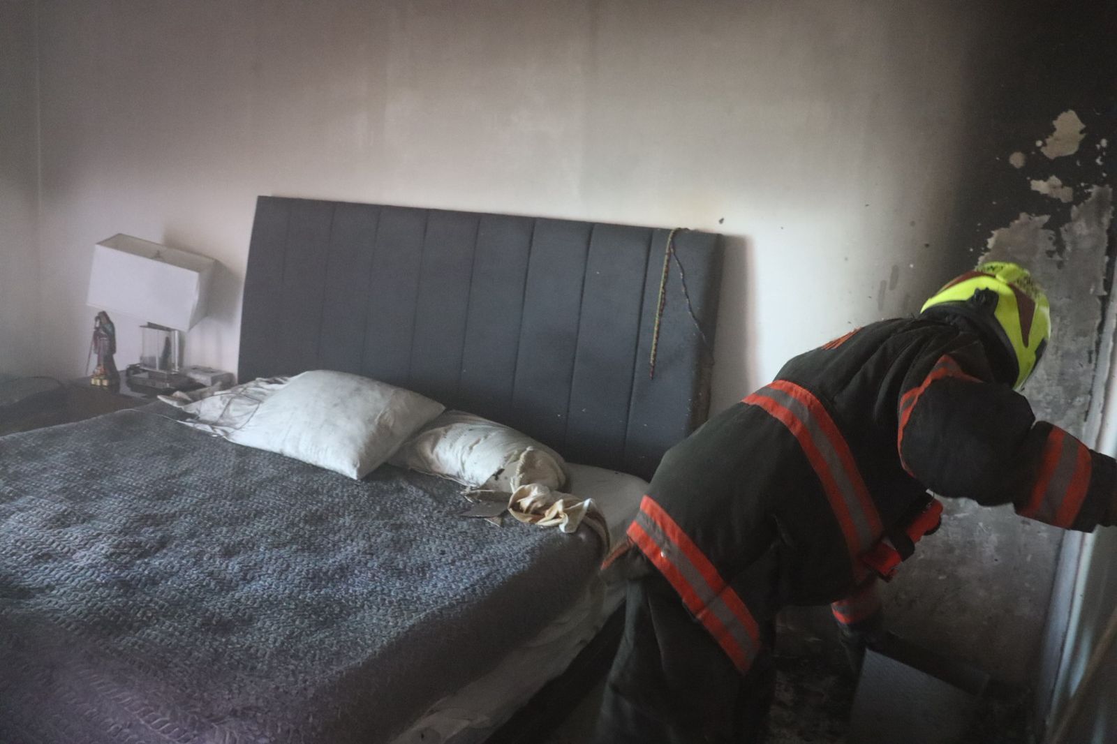 Al llegar al lugar, los oficiales identificaron que el incendio se originaba en un cuarto del segundo nivel, donde un buró con altar se encontraba en combustión. El fuego fue sofocado mediante el uso de agua a presión, evitando daños mayores.