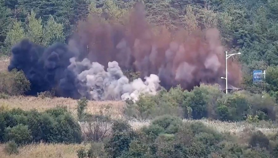 Imágenes difundidas por el ejército surcoreano mostraron columnas de humo tras las detonaciones en Kaesong, al oeste de la línea de demarcación, así como excavadoras y camiones militares del Norte trabajando en la zona bajo la supervisión de oficiales norcoreanos.