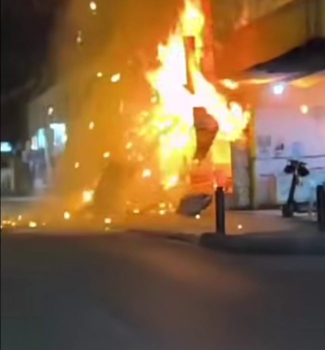 El hecho quedó registrado en videos que pronto aparecieron en redes sociales. En uno de estos se ve a un hombre salir del inmueble envuelto en llamas.