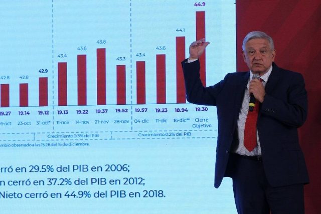 “Hicimos un compromiso de que no aumente la deuda (externa), hasta el 16 de diciembre era del 44.1 por ciento con respecto al Producto Interno, no vamos a pasar del 44.9 por ciento”, afirmó en su conferencia matutina de este jueves.