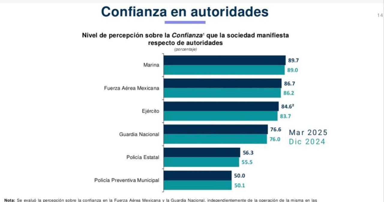 Por otro lado, también se observó un ligero incremento en la confianza y percepción del desempeño de la Policía Estatal. La confianza en la corporación pasó de 55.5 a 56.3 puntos, mientras que la percepción del desempeño aumentó de 53.9 a 55.4 puntos en el mismo lapso.
