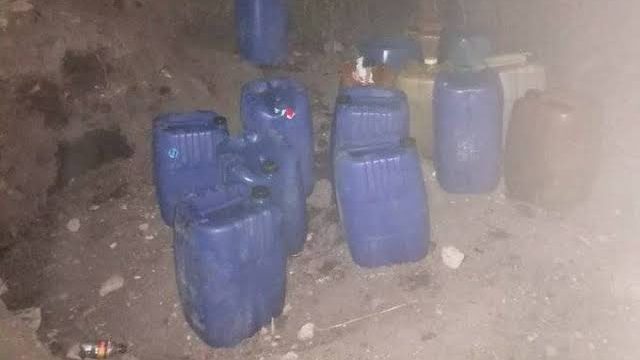 Cerca del lugar, localizaron casi 775 litros de hidrocarburo, distribuidos en 16 garrafones de plástico, 10 de ellos con capacidad de 50 litros, y seis de 60 litros, todos con hidrocarburo a 90 por ciento de su capacidad.