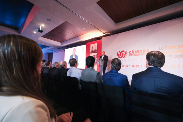 Recibieron reconocimientos “#YoSoyCámara”, Hans Neufeld Solorzano; “Joven Emprendedor” a Grupo Come Verde S.A. de C.V en manos Mariana Barba, Andrés Barba y Emilio Berdegué; “Medalla de Honor” al Consejo Regulador del Tequila A.C., recibiendo su presidente Miguel Ángel Domínguez Morales; “Mexicano Sin Fronteras” a Northgate Market Familia González, con Sergio González, Joshua González, Manuel González y Galardón “Mercurio Empresarial”, a la empresa jalisciense Akron, recibiendo Santiago y Salvador Martínez de la Torre.