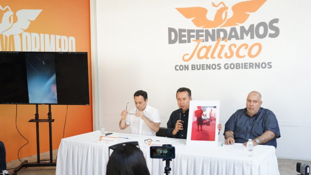 Al mostrar el video como evidencia, el coordinador estatal de Movimiento Ciudadano, José Manuel Romo Parra, y el Senador Clemente Castañeda, señalaron como responsable de la agresión al candidato de Morena a la presidencia de Guadalajara, José María “Chema” Martínez.