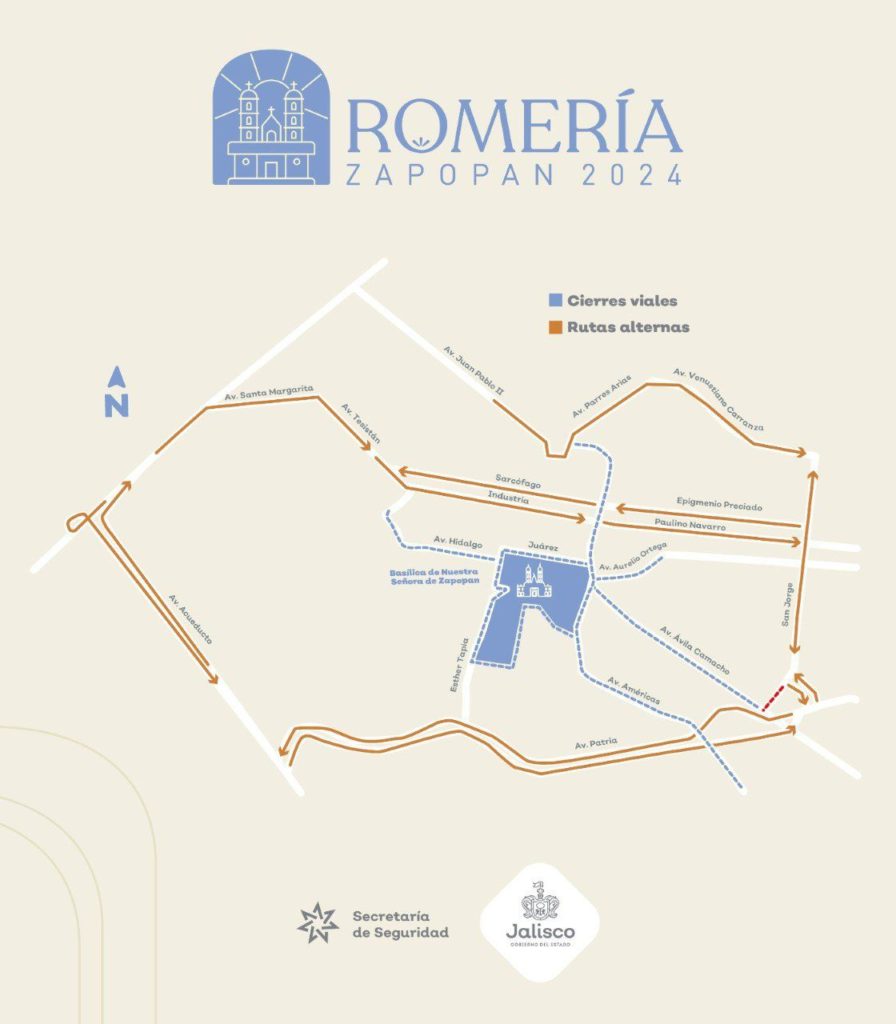 El cierre de las vialidades que forman parte de la ruta de la Romería iniciará desde las 23:00 horas del 11 de octubre hasta la finalización del evento.