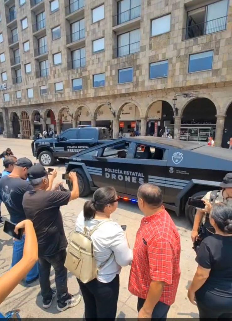 Desde este sábado, la Policía Estatal de Jalisco incorporó a su flota una vehículo de alta tecnología, la primera Cybertruck, como parte de su estrategia para mejorar la vigilancia y respuesta ante emergencias. La unidad especializada en Inteligencia Policial y Drones fue presentada este lunes frente a la Catedral de Guadalajara, donde la ciudadanía puede conocer de cerca sus capacidades tecnológicas.