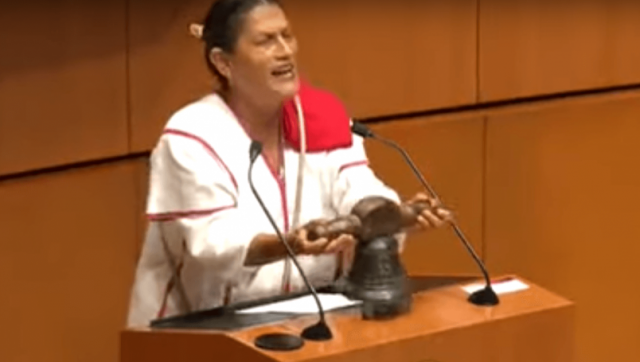 La senadora Jesusa Rodríguez hizo uso de la tribuna del Senado para alertar sobre la pretensión de construir una mina a cielo abierto para extraer oro y plata en el Cerro del Gallo, en Dolores Hidalgo, Guanajuato.