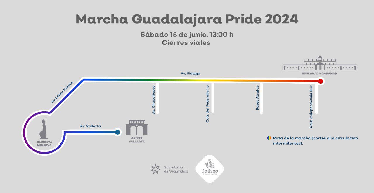 El Gobierno de Jalisco a través de la Secretaría de Seguridad del Estado (SSE), en coordinación con la Comisaría de la Policía Vial informó sobre la implementación de un operativo especial para la marcha del orgullo de diversos colectivos denominada Pride Guadalajara, programada para el próximo sábado 15 de junio.