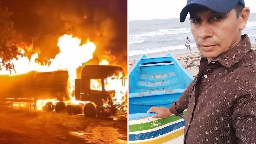 Luego del homicidio, la turba prendió fuego al camión, marca Hino, placas M 401-937 según versiones locales, y el vehículo quedó completamente calcinado.