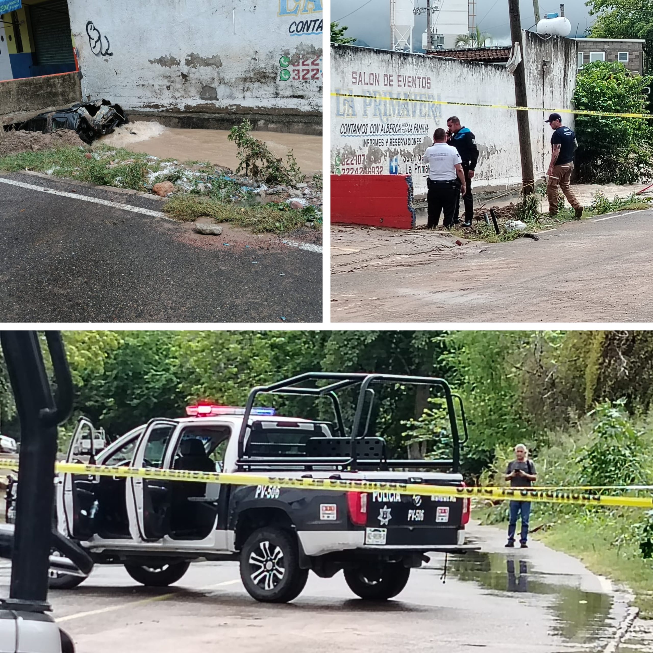 PUERTO VALLARTA, Jal., 12 de octubre de 2025.- Una persona perdió la vida tras ser arrastrada la camioneta en que viajaba por la corriente del canal El Contentillo, en el municipio de Puerto Vallarta.