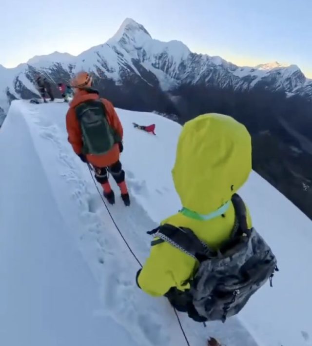 El monte Gongga, ubicado en Sichuan, China, fue el escenario de la muerte de un alpinista quien, al intentar tomarse una selfie con otro grupo de montañistas, cayó dramáticamente deslizándose entre la nieve del pico sin que pudiera detenerse de algo que evitara que cayera al vacío.