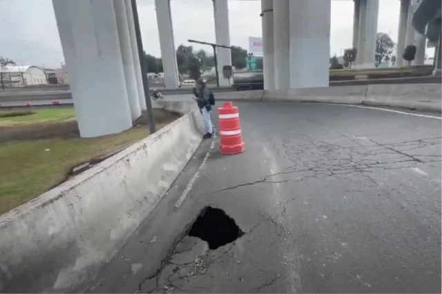 En tanto, el socavón fue detectado en el mismo distribuidor vial, cerca de la calzada Ignacio Zaragoza, que resultó también inundada tras las lluvias del sábado pasado.
