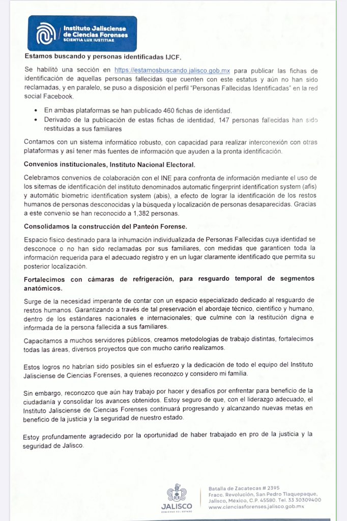 En una decisión que marca un nuevo rumbo para el Instituto Jalisciense de Ciencias Forenses (IJCF), Gustavo Quezada Esparza presentó su carta de renuncia al Gobernador de Jalisco, Pablo Lemus Navarro. A través de este acto formal, Quezada Esparza anunció que no continuará en el proceso para permanecer en el cargo durante los próximos seis años, una determinación que ha sorprendido a muchos en un contexto de intensos debates públicos y presiones de colectivos de búsqueda de personas.