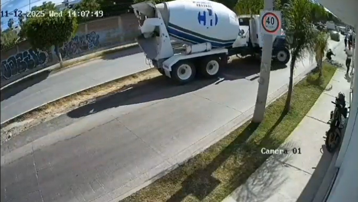 Un camión que transportaba cemento arrolló a un joven en calles de León, Guanajuato, lo que le ocasionó la muerte al instante.
