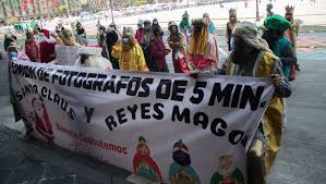 Artistas que representan a personajes como los Reyes Magos y Papá Noel en Ciudad de México protestaron este lunes para reclamar lugares donde puedan trabajar a pesar de las restricciones de la pandemia.