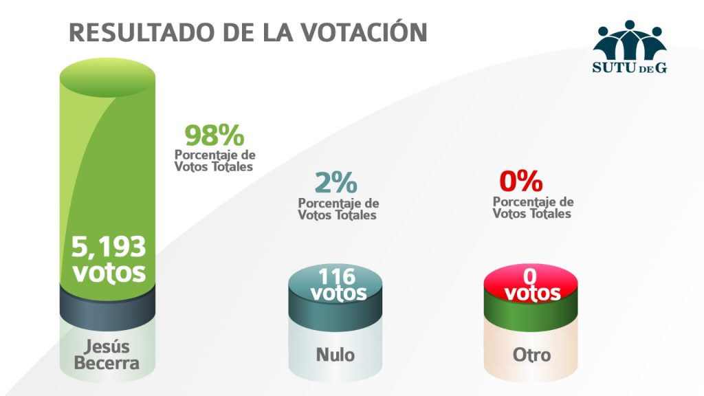 - Destaca histórica participación en la elección, por los votos obtenidos: 96 por ciento, muestra de una política sindical que antepone el diálogo