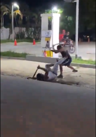 Un video compartido en redes sociales, muestra a dos hombres que pelean a machetazos frente a una gasolinera en calles de República Dominicana.