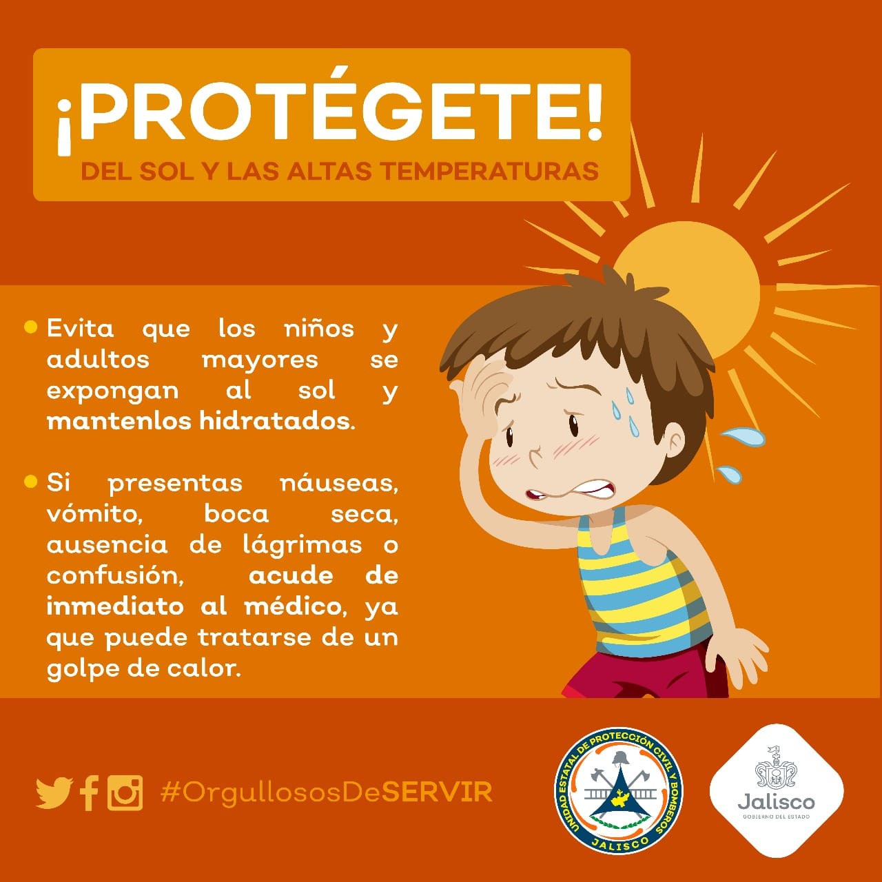 Para este fin de semana continúan las condiciones propicias para seguir con una posible ola de calor con temperaturas que puedan alcanzar los 40 grados centígrados en algunas zonas del Estado de Jalisco, además de fuertes vientos que pueden superar los 50 kms/hr en costas jaliscienses, esto como parte de una circulación anticiclónica que domina gran parte del país, por lo que se esperan temperaturas cálidas durante el día, así lo dio a conocer la Coordinación General del Servicio Meteorológico Nacional, por lo que pedimos a la población, extremar precauciones.