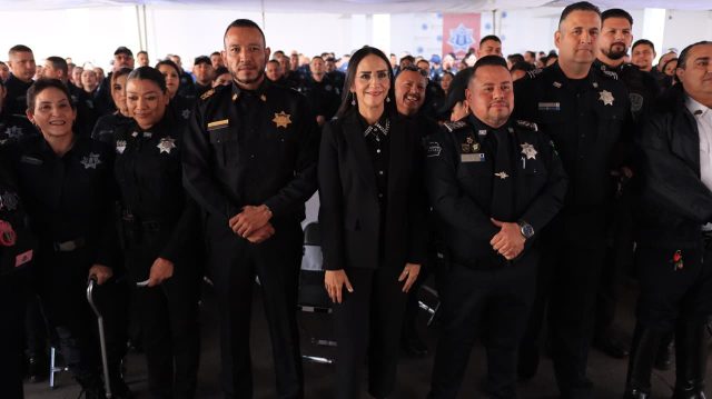 La presidenta municipal, Laura Imelda Pérez Segura, encabezó la ceremonia y dirigió un mensaje en el que subrayó la entrega, lealtad y compromiso de quienes integran la corporación. Señaló que el trabajo policial es fundamental para construir un municipio más seguro y destacó el prestigio que la corporación ha ganado en el área metropolitana y en el estado.