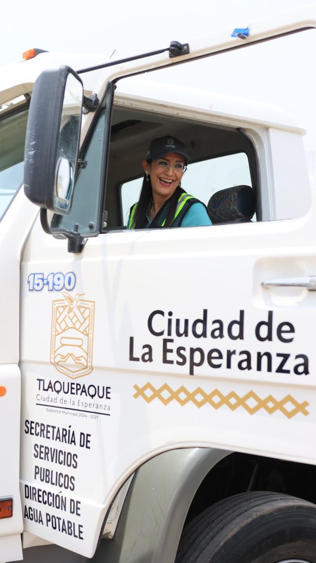 Durante el acto, la alcaldesa resaltó la importancia de contar con maquinaria adecuada para garantizar un servicio eficiente. “A nuestra llegada, solo había ocho pipas, de las cuales solo dos estaban operando, lo cual era insuficiente, especialmente ante el desabasto de agua. Hoy, con estas dos nuevas pipas, sumamos 24 en funcionamiento en todo el municipio, además de contar con ocho vehículos tipo pelícano”, explicó.