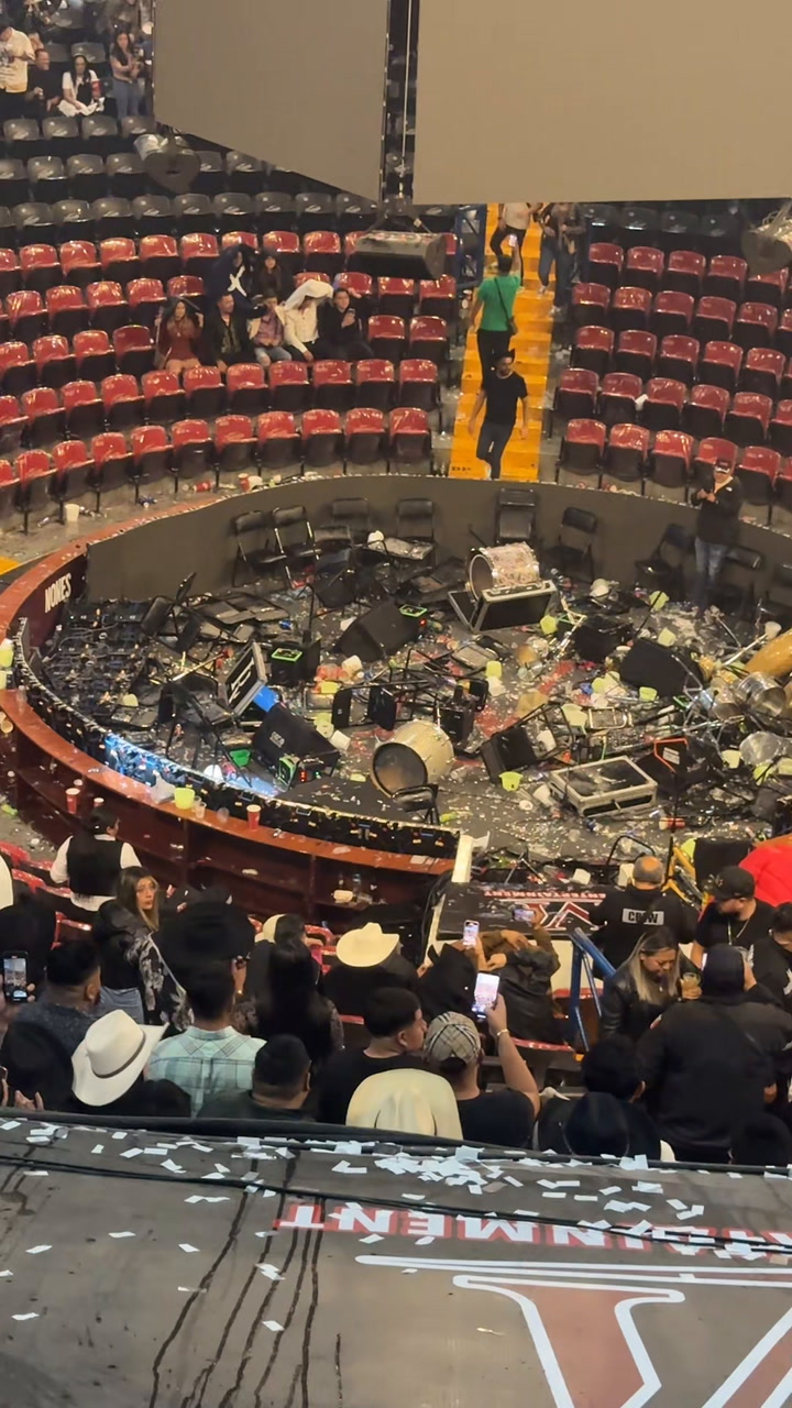 En respuesta, los asistentes comenzaron a gritar “¡Corridos, corridos!», pero tras no conseguir su objetivo, impidieron que continuara con su show y comenzaron a lanzar cerveza y otros objetos al cantante, los músicos y su equipo de trabajo.