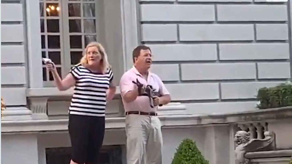 En el video y en otros de redes sociales, se puede ver a algunos manifestantes haciendo una pausa para filmar o fotografiar a la pareja, mientras que a otros se les oye gritar, “¡Sigan moviéndose!” y “¡Vamos!”