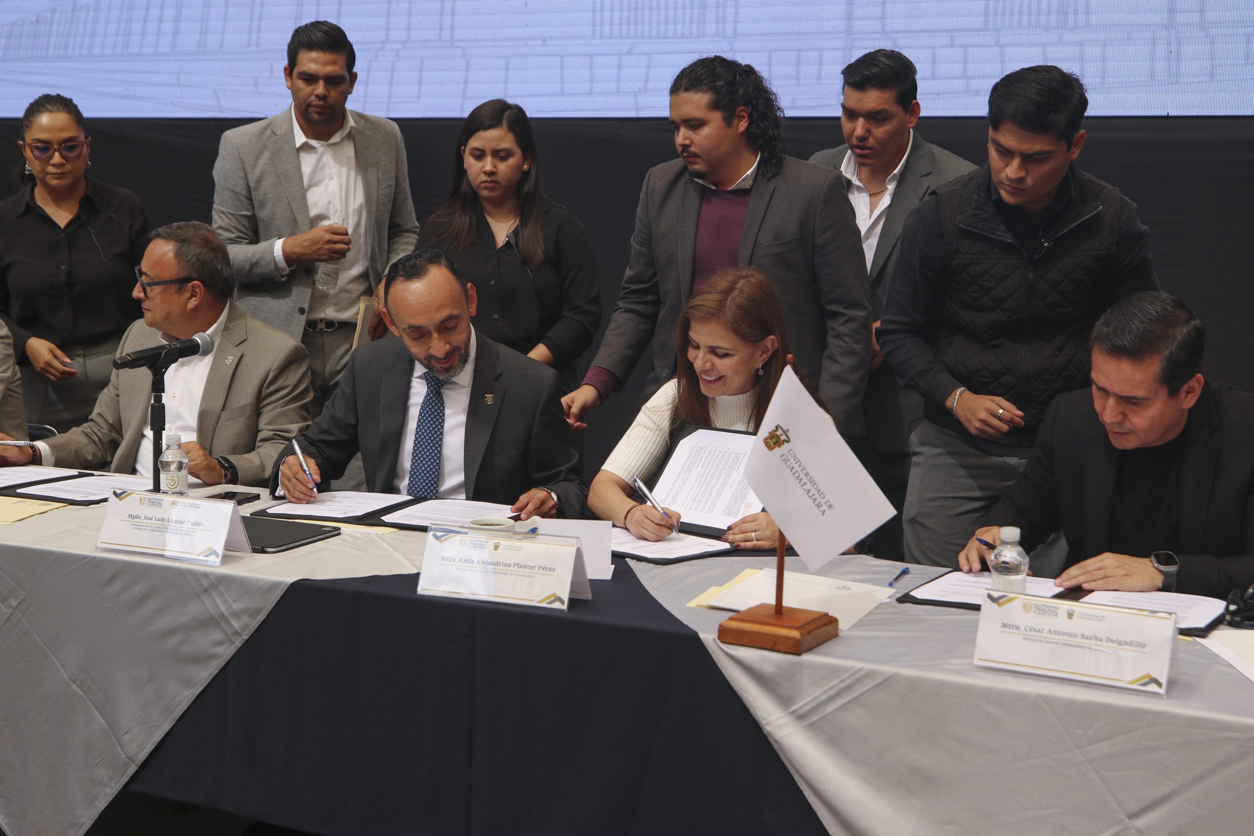 Guadalajara, Jalisco.— La Universidad de Guadalajara (UdeG) y el Supremo Tribunal de Justicia del Estado de Jalisco firmaron un convenio de colaboración con el objetivo de impulsar la formación, actualización y profesionalización de estudiantes y profesionales del Derecho en la entidad.