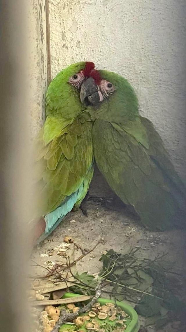 Al llegar al lugar, los especialistas identificaron a las aves como guacamayas verdes, las cuales se encontraban en una condición de vulnerabilidad, con baja condición física y sin las plumas primarias, sugiriendo que habrían sido capturadas recientemente y lograron escapar. La presencia de las aves en ese estado generó preocupación entre los vecinos y llevó a la movilización de los rescatistas.