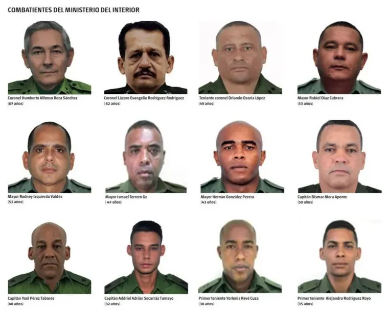 Medios oficiales de la isla publicaron una lista con los efectivos cubanos muertos: 21 pertenecían al ministerio del Interior, incluidos tres oficiales de alto rango (dos coroneles y un teniente coronel).